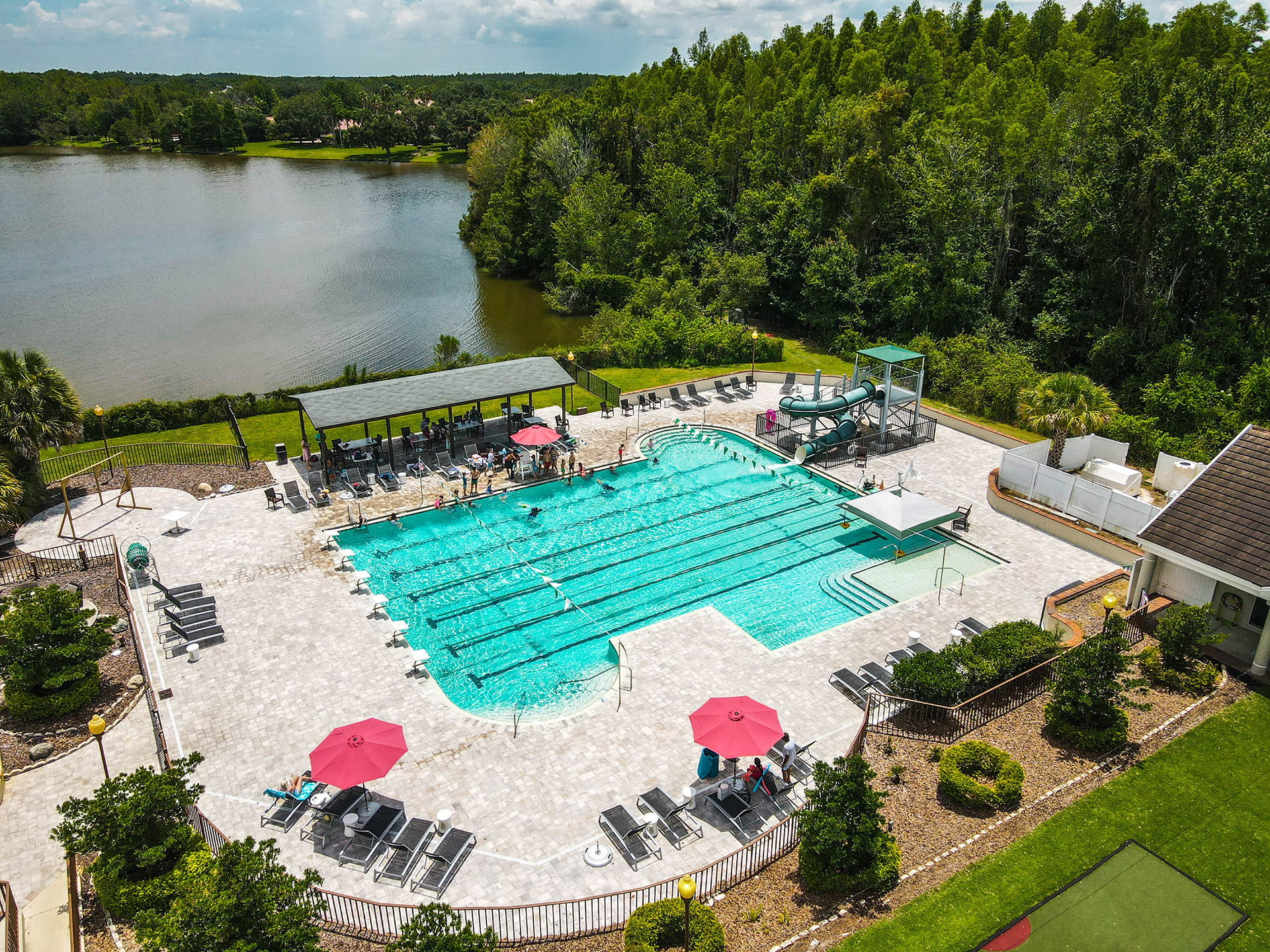Whether swimming is your workout or your reward, Hunter’s Green is the place to be. After a dip in the resort-style pool (with a slide and a kids’ splash pad!), you can lay back and relax in the poolside cabanas.